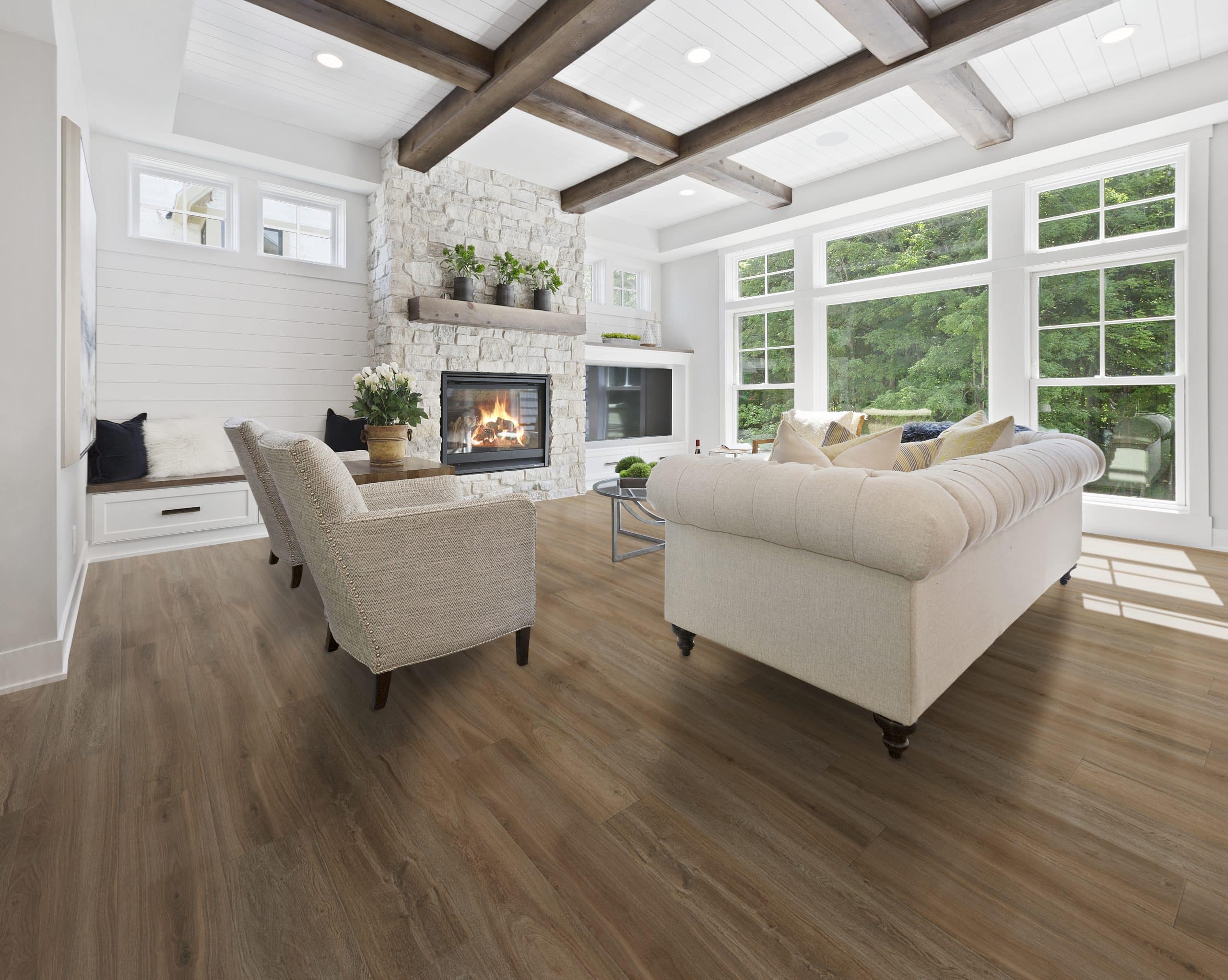 - Iconic coastal oak tones with premium wood grain embossing for more realistic planks