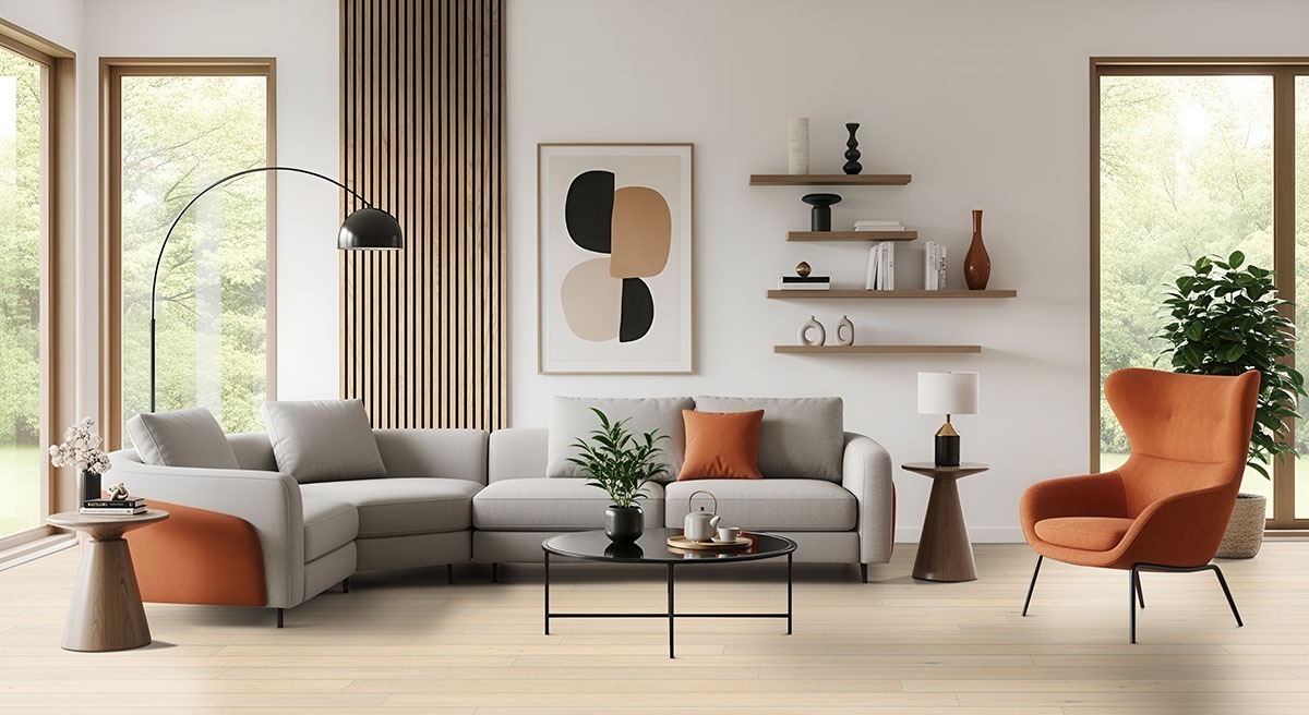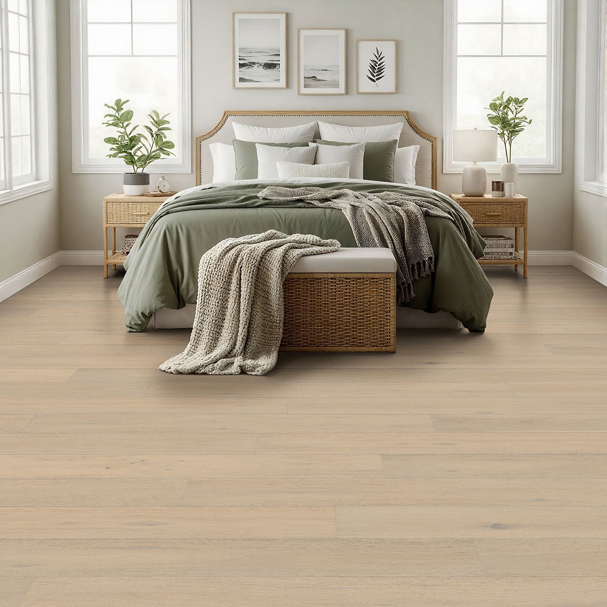 Mable offers a soft, sandy-oak tone with warm neutral undertones that blend seamlessly into many décor styles. The natural oak grain provides depth and subtle variation, keeping the floor from appearing flat or monotonous. This light tone complements whites, creams, pastels, and even darker contrasting furniture, creating a balanced, harmonious base that brightens up interiors without overwhelming them.