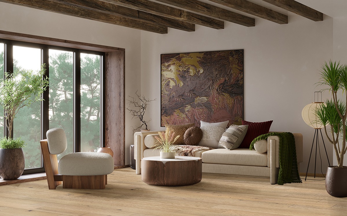 Northcutt offers the authentic look and warmth of European oak combined with the practicality of modern engineered hardwood. Its soft beige-oak tone and wide-plank design make it an excellent choice for homeowners seeking a clean, versatile floor that complements a wide range of décor styles — from airy coastal spaces to warm transitional designs. The engineered construction ensures long-term performance and stability without sacrificing natural hardwood beauty.
