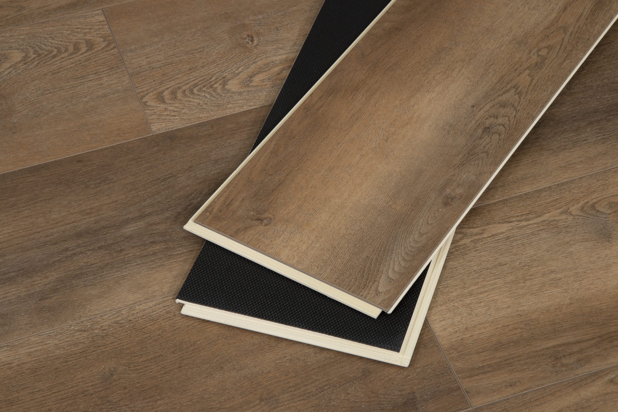 - Quieter, cushioned WPC comfort – softer than SPC vinyl with attached acoustic padding for better sound insulation