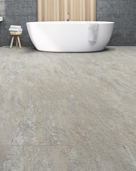 The Provenza MaxCoreâ„¢ Waterproof LVT Stonescape Collection features an exclusive tile pattern with a realistic stone texture and bevel edge effect.