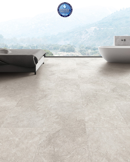 The Provenza MaxCoreâ„¢ Waterproof LVT Stonescape Collection features an exclusive tile pattern with a realistic stone texture and bevel edge effect.