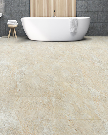 The Provenza MaxCoreâ„¢ Waterproof LVT Stonescape Collection features an exclusive tile pattern with a realistic stone texture and bevel edge effect.