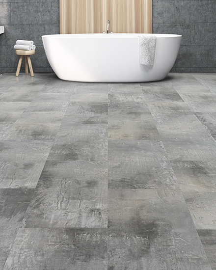 The Provenza MaxCoreâ„¢ Waterproof LVT Stonescape Collection features an exclusive tile pattern with a realistic stone texture and bevel edge effect.