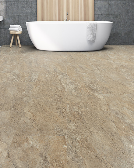 The Provenza MaxCoreâ„¢ Waterproof LVT Stonescape Collection features an exclusive tile pattern with a realistic stone texture and bevel edge effect.