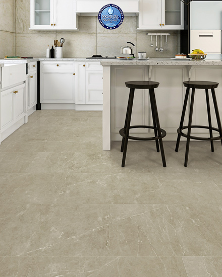 The Provenza MaxCoreâ„¢ Waterproof LVT Stonescape Collection features an exclusive tile pattern with a realistic stone texture and bevel edge effect.
